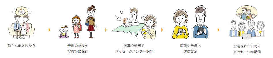 メッセージバンクを利用することにより、遠い未来に自分の想いを託すことが可能になります。