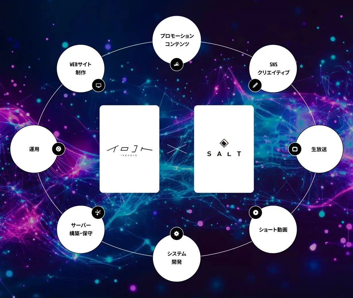 アニメ・ゲームを中心としたエンターテイメント業界のWeb制作・デジタルクリエイティブに強みを持つ、株式会社イロコト(本社:東京都渋谷区、代表取締役社長:穂刈 謙亮)とソルト株式会社(本社:東京都豊島区、代表取締役社長:山本 和男)は、両社パートナーシップのさらなる強化に合意し、業務提携を行いました。