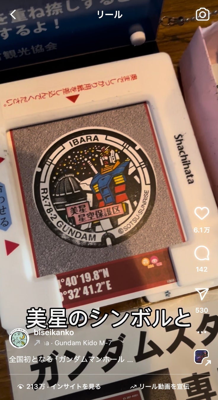 岡山県井原市にある美星町観光協会(住所:岡山県井原市美星町三山1055番地)は、現在開催中の「ガンダムマンホール」デザインの重ね捺しスタンプラリーにおいて、3月初旬に動画をInstagramなどのSNSに投稿。