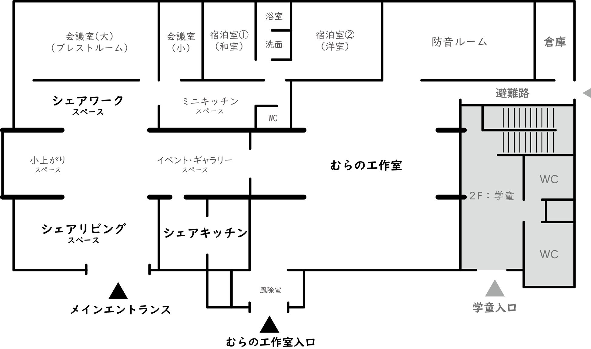 - 施設機能:オフィス・宿泊室・シェアキッチン・工作室・シェアリビング