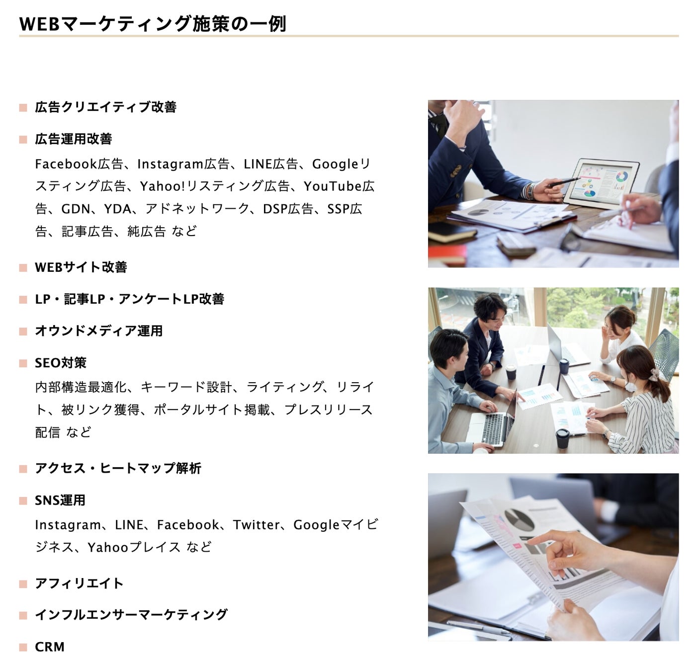 本部側でバナー・動画広告クリエイティブの改善、全体のWEB広告の運用改善、LPの改善、サービスサイト・オウンドメディアのSEO対策などを継続的に実施。