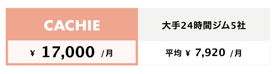 大手24時間ジム5社の月会費平均7,920円に対し、CACHIEは17,000円と2倍以上。