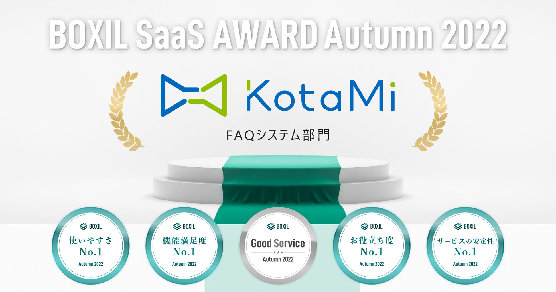 クラウド型AI-FAQサービス「KotaMi」、「BOXIL SaaS AWARD Autumn 2022」FAQシステム部門で「Good Service」に選出