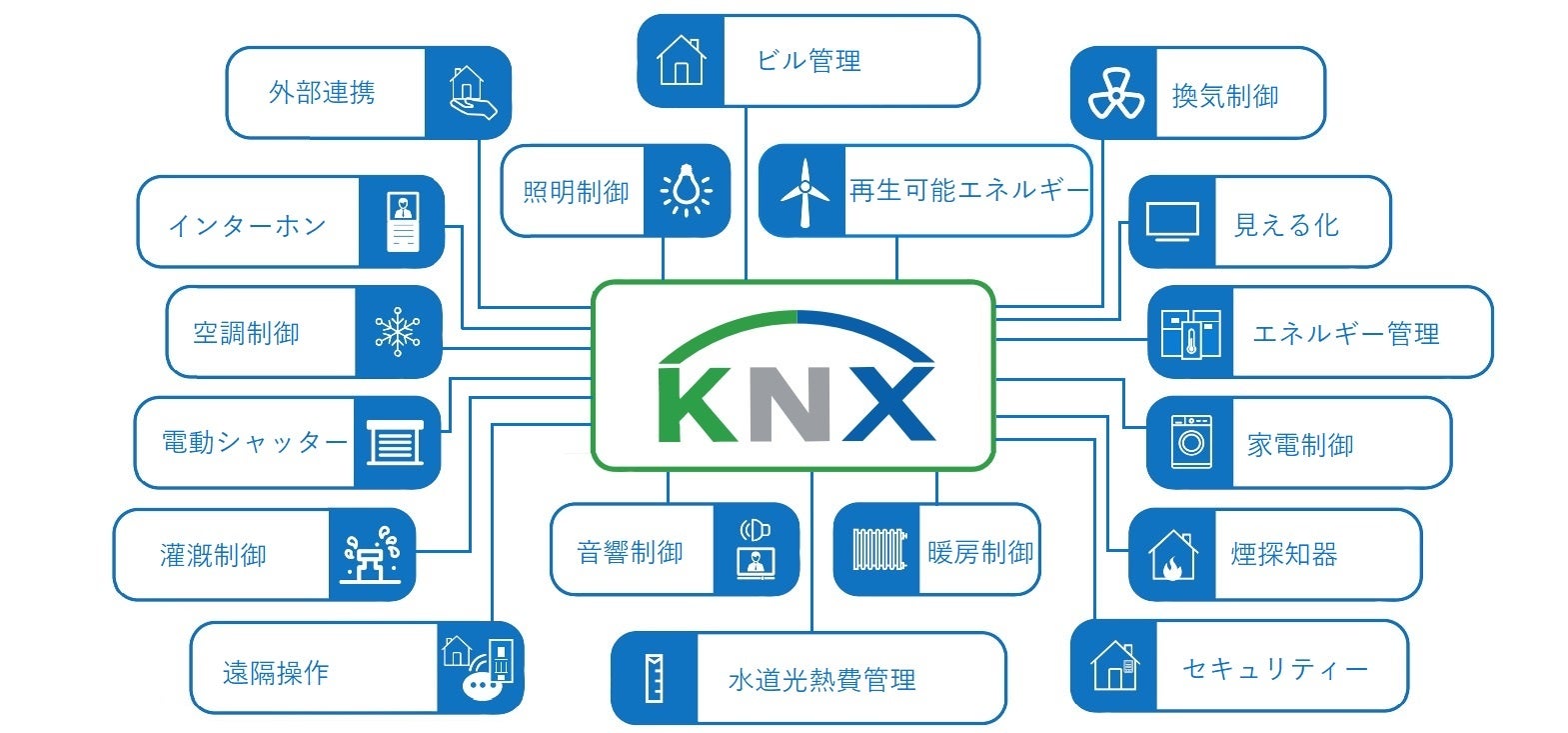 「KNX」とは、ホテルや大型オフィス、家庭のリビングにいたるまで、シチュエーションに応じて空間のオートメーション化を実現するシステムのことを指し、EN 50090 および ISO/IEC 14543 として世界標準化されています。