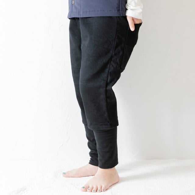 もんぺの形状を現代の素材で刷新した「もんぺまくる」、簡易に膝丈にまくり上げることができる