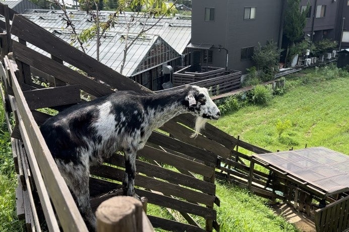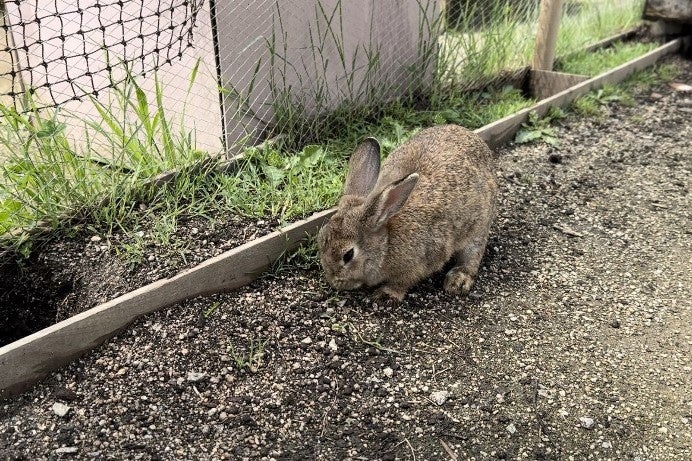 やぎ・うさぎ・にわとりとの触れ合い ウッドチップのこどもの遊び場