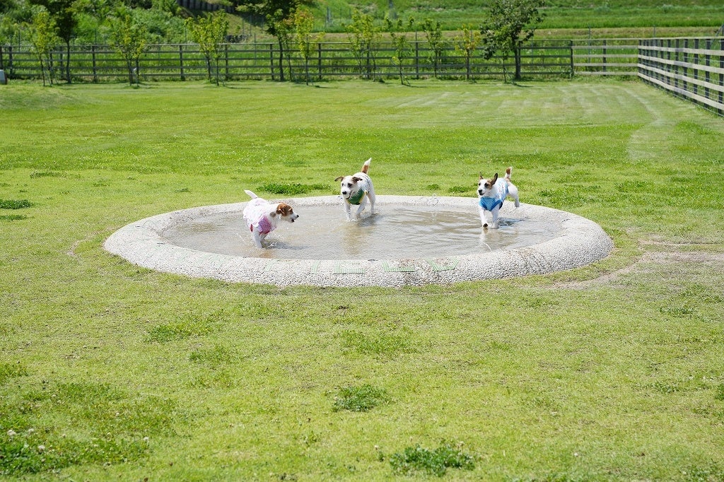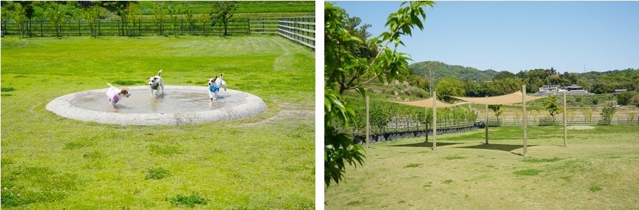 愛犬同伴で多数お越しいただくthe Farm UNIVERSAL。人気の緑溢れる天然芝のドッグラン「THE FARM FIELD (ザ ファーム フィールド)」も併設しています。7.8月はプレオープン特典でフリードッグラン入園料無料!!