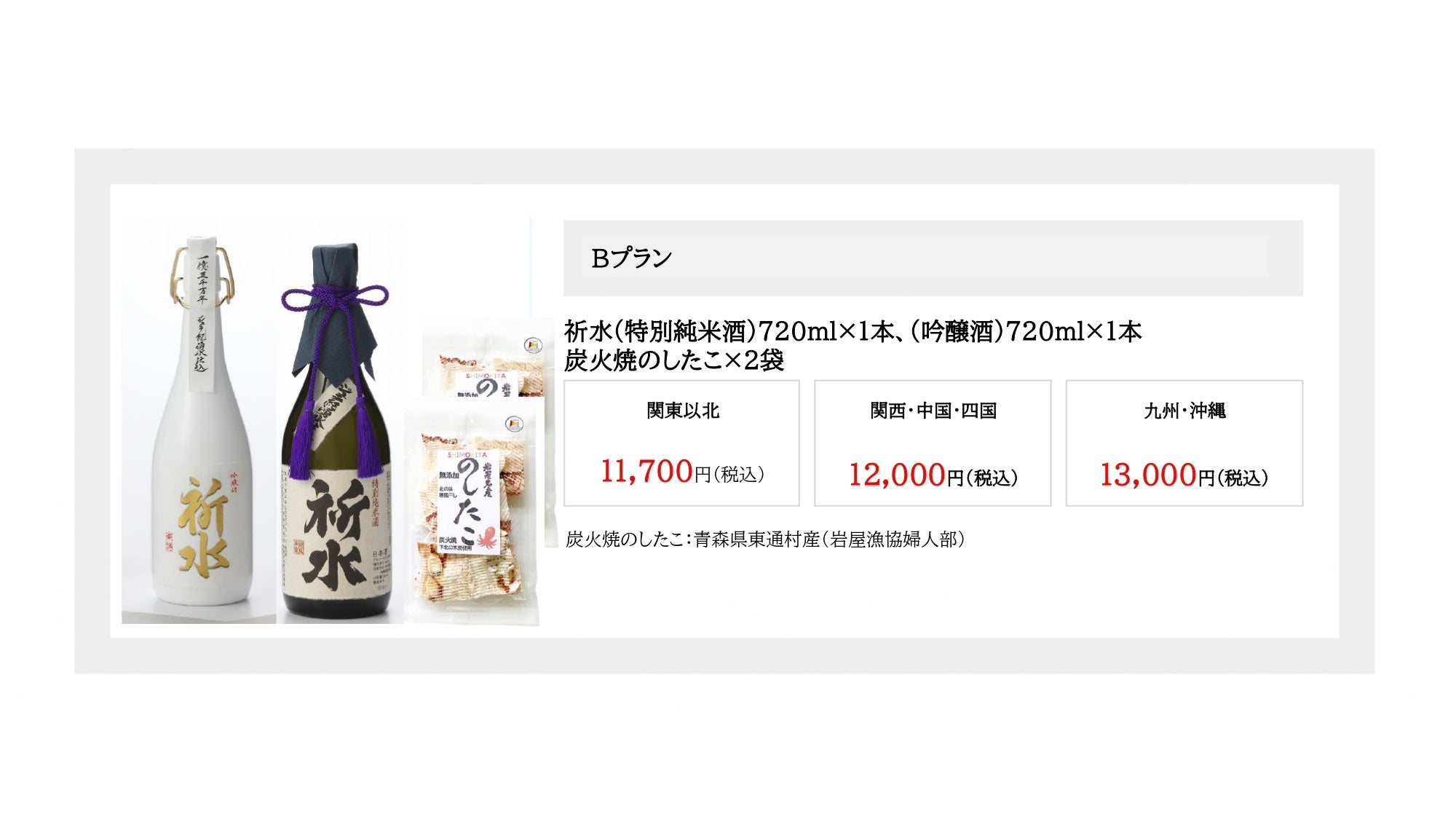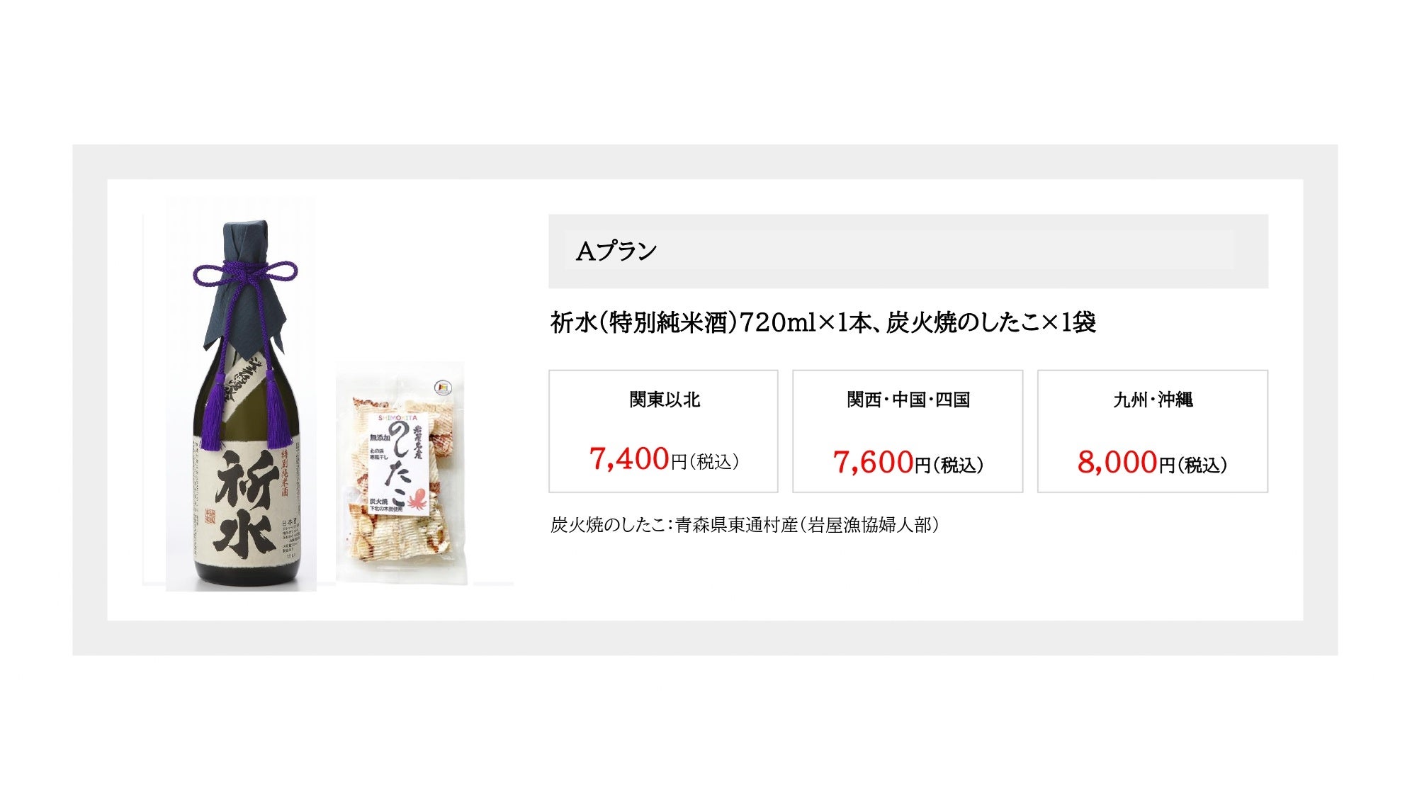 東通村のジュラ紀地層を経て湧き出る水と東通産の米を使用し、本州最北端の醸造所関乃井酒造が醸した地酒「祈水」。「祈水」という名は能舞に由来し、神へ捧げる祈りの心、自然や人に感謝する想いをが込められています。1年に1樽だけ寒造りで仕込む、通常は東通村内のみ限定販売のまさしく地酒。ふくよかな米の香りの中に厳冬下北での寒造りらしい荒々しさや芳醇さが感じられる醇酒です。