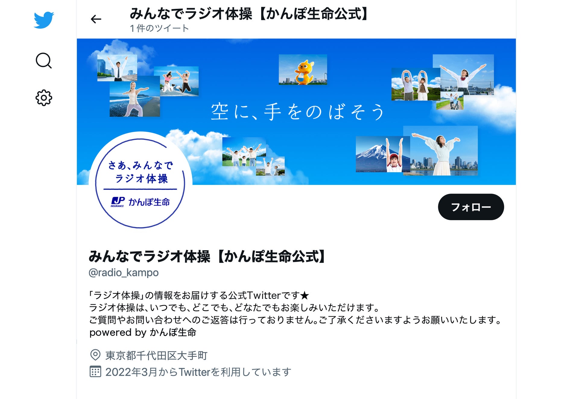 ②公式Twitterアカウント「みんなでラジオ体操」(@radio_kampo)