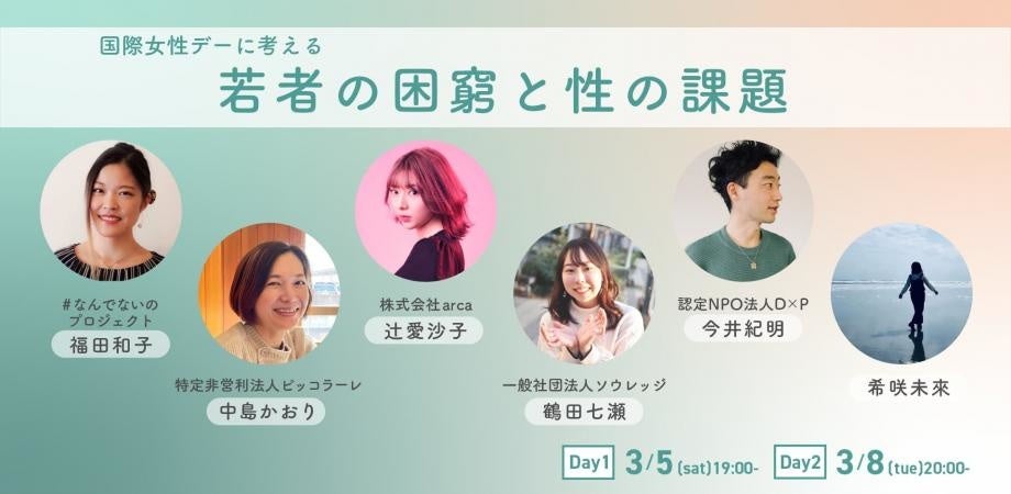 【国際女性デーイベント】若年妊娠、女性の権利、若者支援について社会起業家・アクティビスト・専門家と考える、『国際女性デーに考える、「若者の困窮と性の課題」』を3月5日(土)、8日(火)に開催。