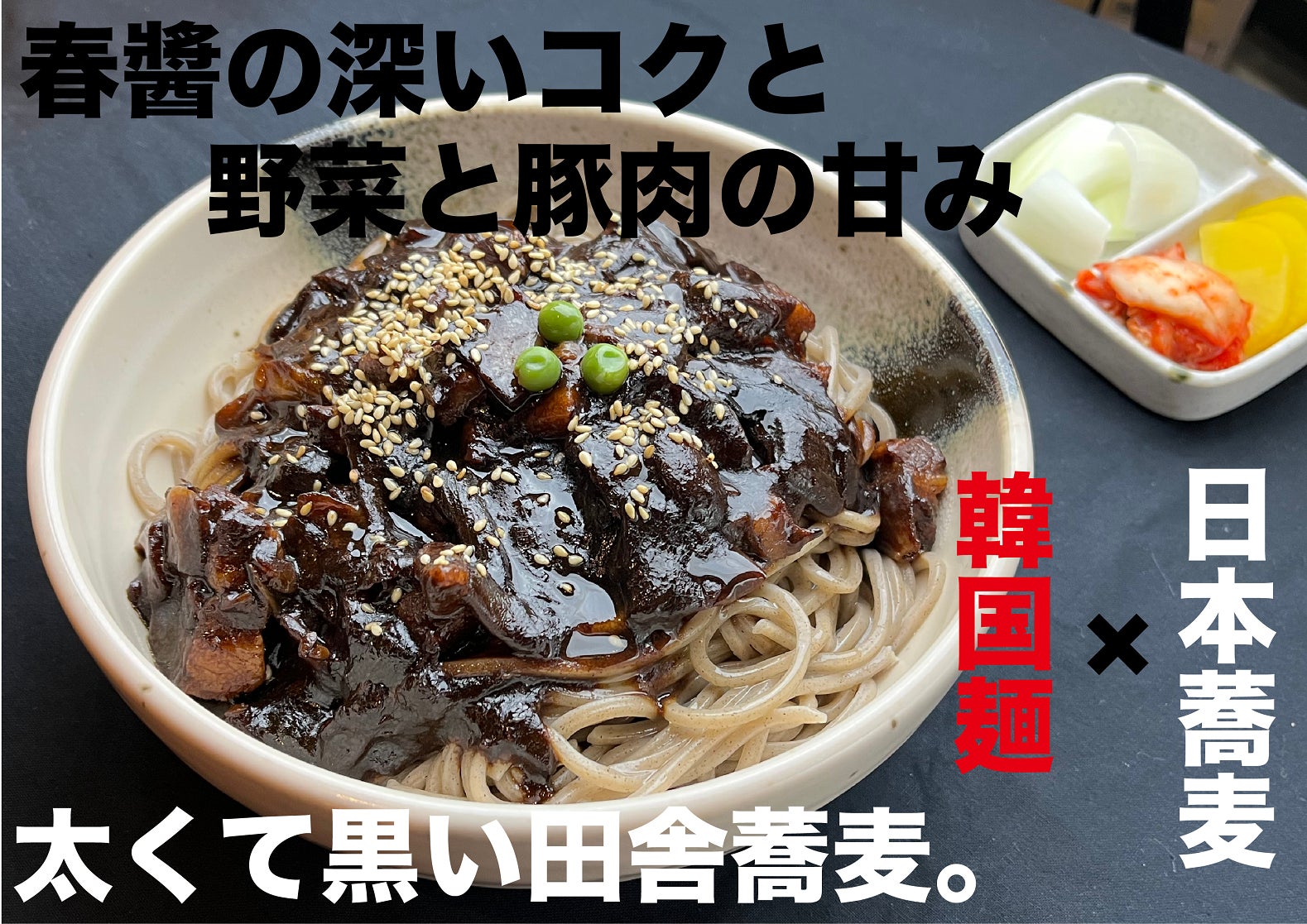 【ブラックデー】★4/14★日本初!(たぶん…)太くて黒い日本蕎麦を使った『韓国ジャージャー蕎麦』が期間限定イベント商品として新登場‼『なぜ蕎麦にラー油を入れるのか。』で韓国コラボヌードルを味わおう!