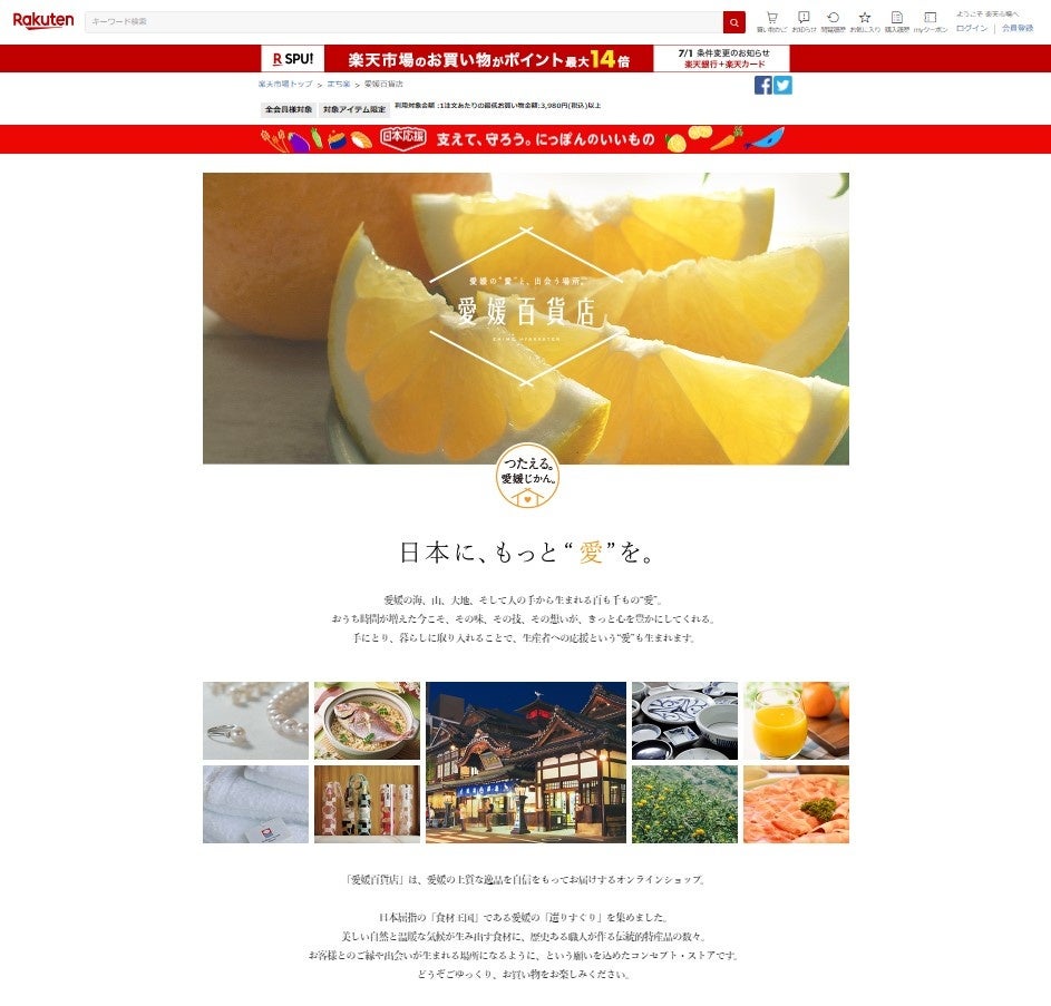 - 【ピックアップ】「楽天市場内」サイト『日本のよいもの市×愛媛百貨店』開設、キャンペーンについて