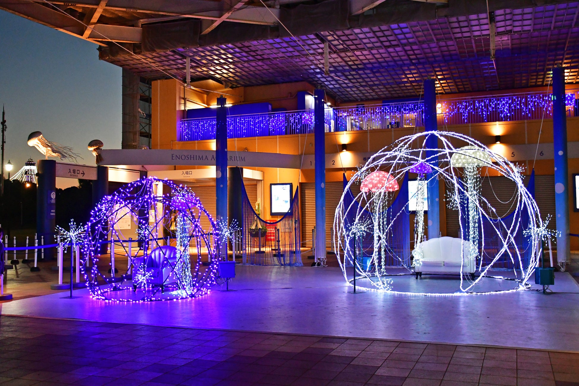 Jewerium [ ジュエリウム ] https://www.enosui.com/jewerium/ 〈開催期間〉 2023 年 11 月 23 日(祝・木)~2024 年 2 月 29 日(木) 〈営業時間〉 11 月 23 日(祝・木)~11 月 30 日(木) 9:00~17:00 12 月 1 日(金)~2 月 29 日(木) 10:00~17:00 ※12 月 22 日(金)~12 月 24 日(日) 10:00~18:00 ※12 月 29 日(金)~1 月 3 日(水) 9:00~17:00 ※チケット販売、最終入場は閉館 1 時間前まで ※なぎさの体験学習館は 9:00~17:00 12 月~2 月 は 10:00~ 年末年始は 9:00~ ※休 館 日 1 月 22 日(月)~1 月 26 日(金) 〈入場料金〉 大人 2,500 円、高校生 1,700 円、小・中学生 1,200 円、幼児(3 歳以上) 800 円 |
