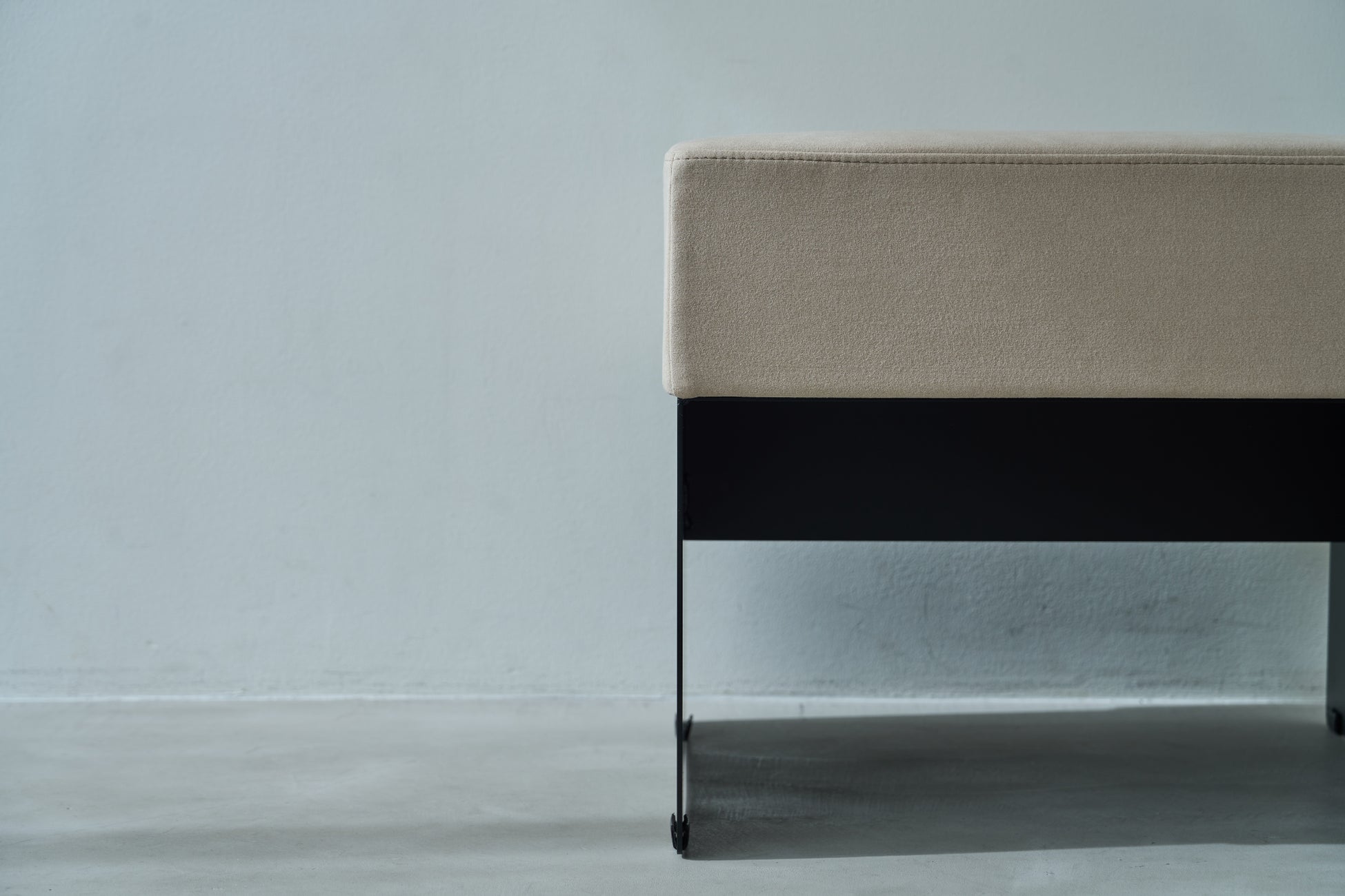 細身で美しいスチール脚と、しっかりとしたクッション性を備えた座面の組み合わせにより、シンプルながらも洗練された佇まいに。寝室の一人用ソファやオットマンとしてだけでなく、適度な硬さを活かしサイドテーブルとしても活用できます。