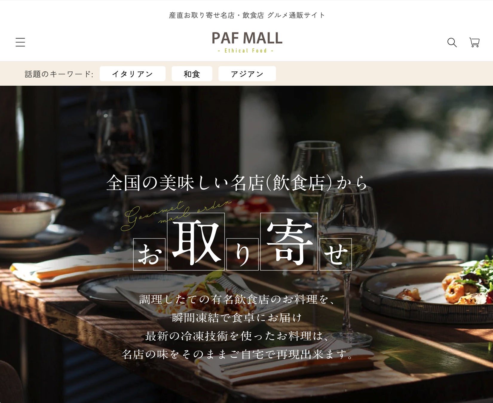 「PAF MALL」は、“美味しく安全で便利な食事”を求める子育て世代や中高年の想いに寄り添うべく、全国各地の名店シェフによる、地産地消の食材を使用した良質・上質な料理を揃え、特に“エシカル消費”の要素を持った商品にスポットを充てたコンセプト型のECモールです。