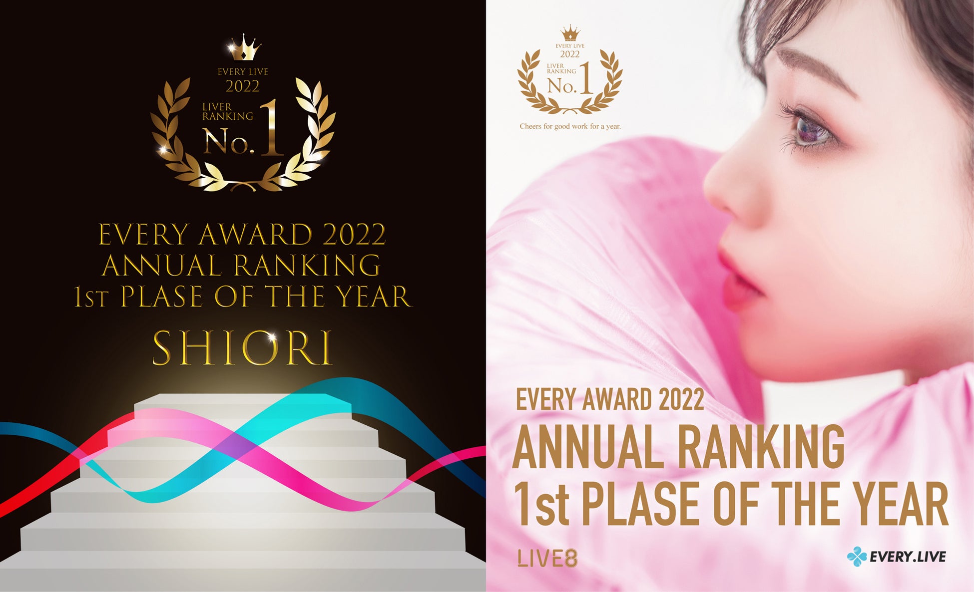 LIVE8は四半期に一度行われる公式優良エージェント認定条件をQ1〜Q4全て1位を獲得し、2021年に続き2022年ライバー事務所ランキング1位を2年連続で獲得!また、LIVE8所属ライバーの『SHIORI』が everylive年間ライバーランキングにて2年連続 1位を獲得!