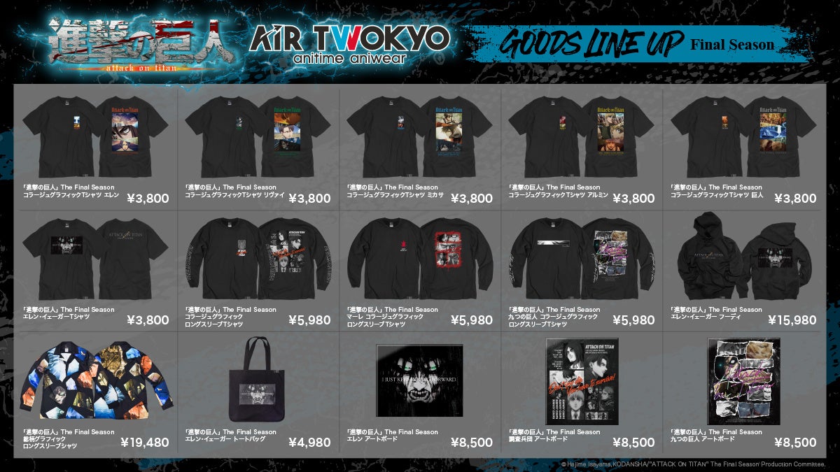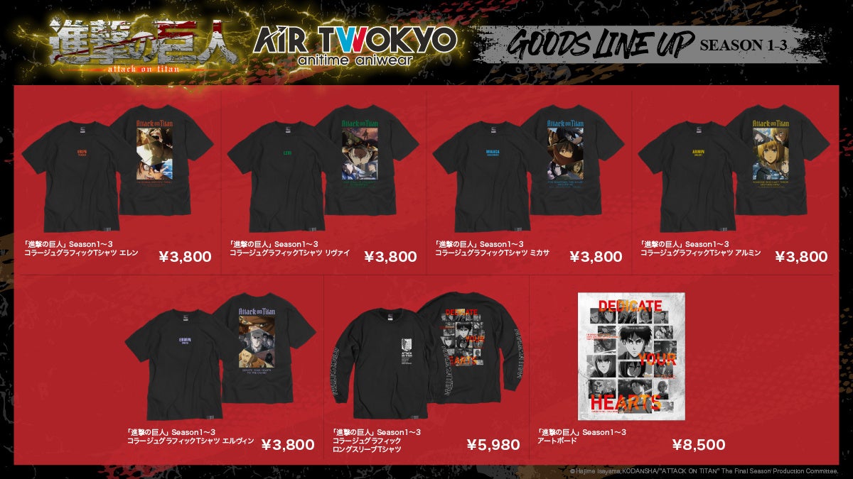 【アニメグッズ*越境EC】AIR TWOKYOのコレクションライン企画!TVアニメ『進撃の巨人』2022年8月1日から世界へ販売開始!