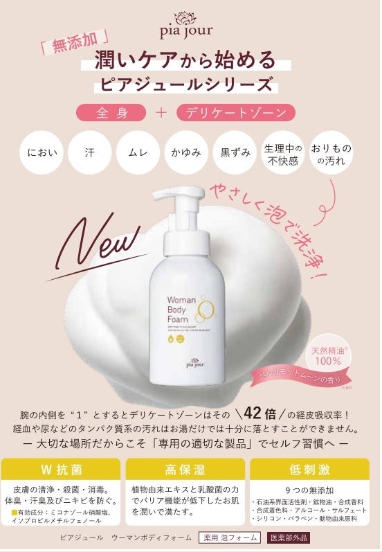「大切な場所だからこそ専用の製品でセルフ習慣へ」泡ボディーソープ(医薬部外品) piajour Woman Body Foamが新登場!