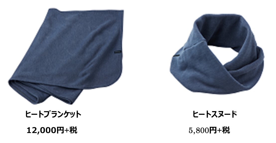 アクセサリー:ヒートブランケット:12,000円(税別)、ヒートスヌード:5,800円(税別)