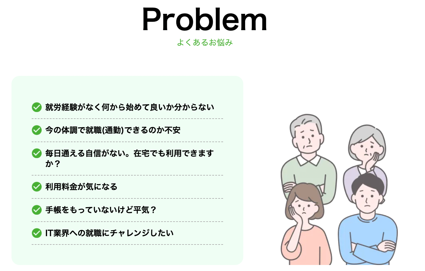 持続的なフォロー | 就労後も継続的にフォローアップを行い、長期的なキャリア形成をサポートします。 |