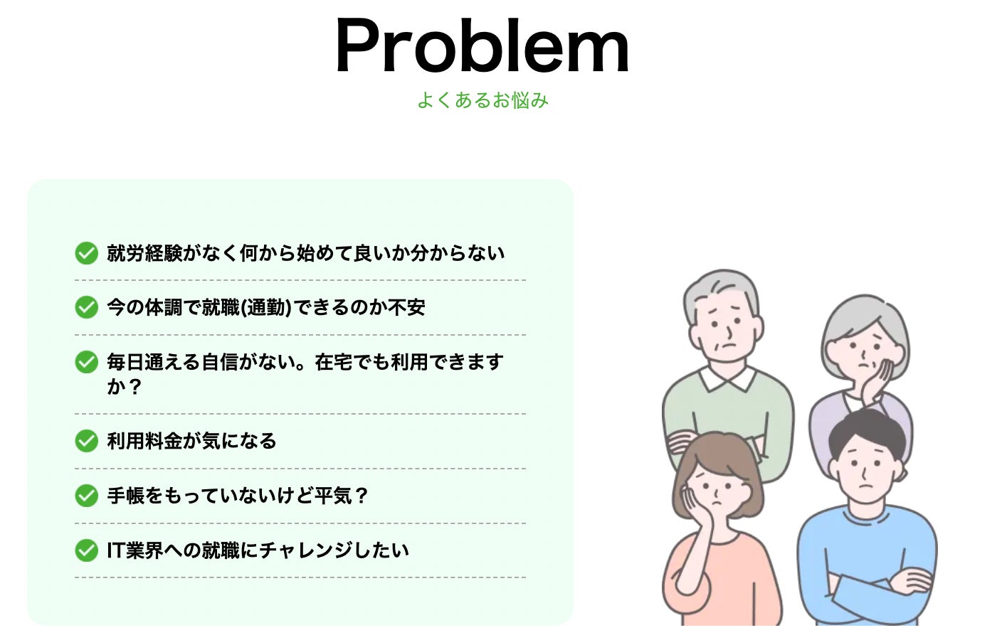 ITスキル特化として、【時代のニーズに合ったスキル】が取得できる場所です。 2020年から世の中の働き方は劇的に変わりました。 在宅でのお仕事、リモートでのMT、人と人とが直接会う機会は減り、仕事の場所・内容も変わってきています。 今、求められてるスキルは何でしょうか? 世の中で仕事の形は変わっているのに、就労移行支援の中身に変化が無くてもいいのでしょうか?