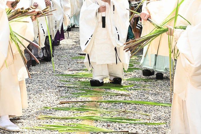 「涼殿祭(すずみどののまつり)」は、島根県出雲市の出雲大社で毎年6月1日に行われる伝統行事です。夏の始まりに際し、真菰(まこも)を敷いた道を宮司が進み、けがれを祓い、無病息災を祈願する神事として、古くから人々に親しまれてきました。