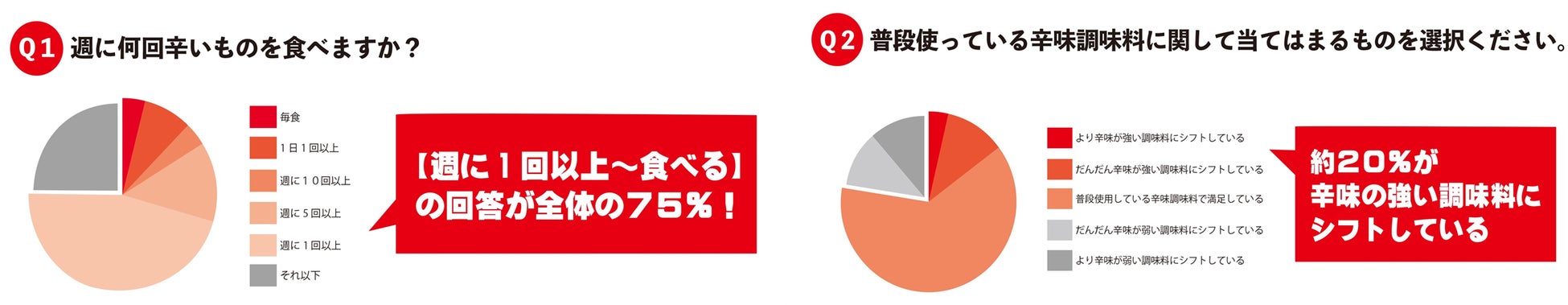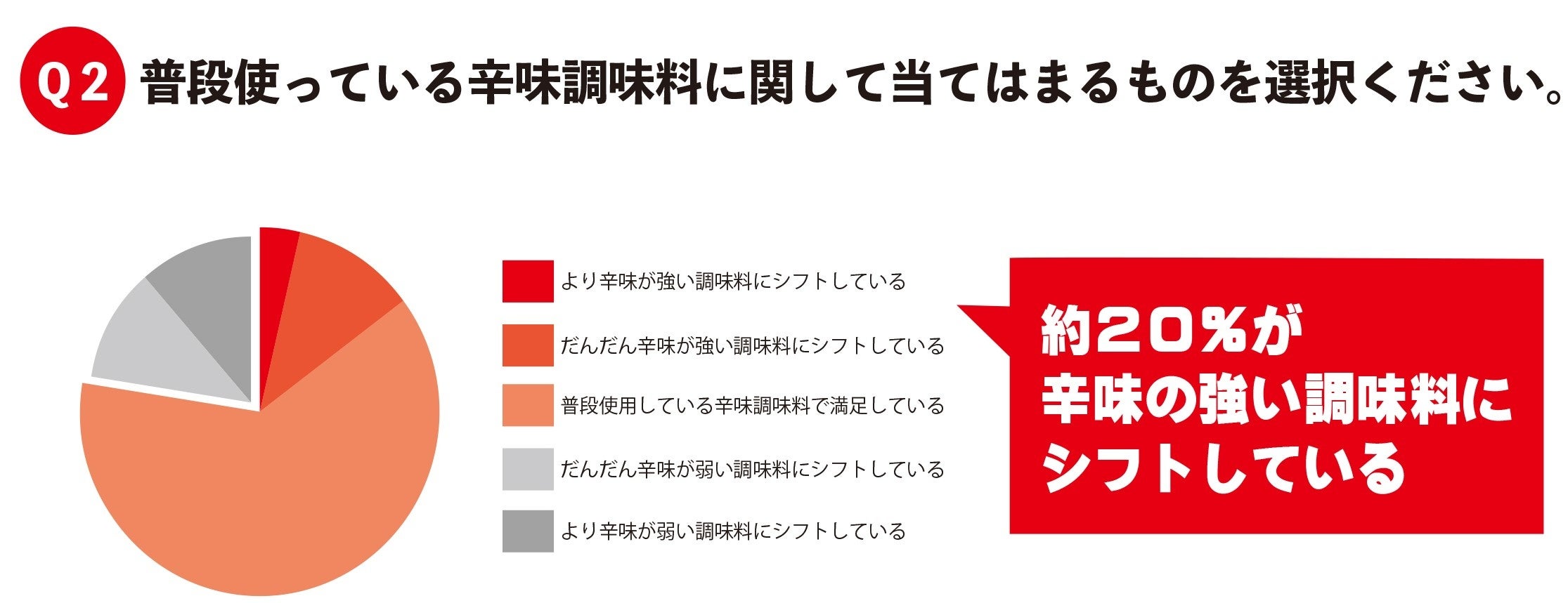 - 辛いもの好き約20%が「辛味の強い調味料にシフトしている」と回答!さらなる辛さが求められている。