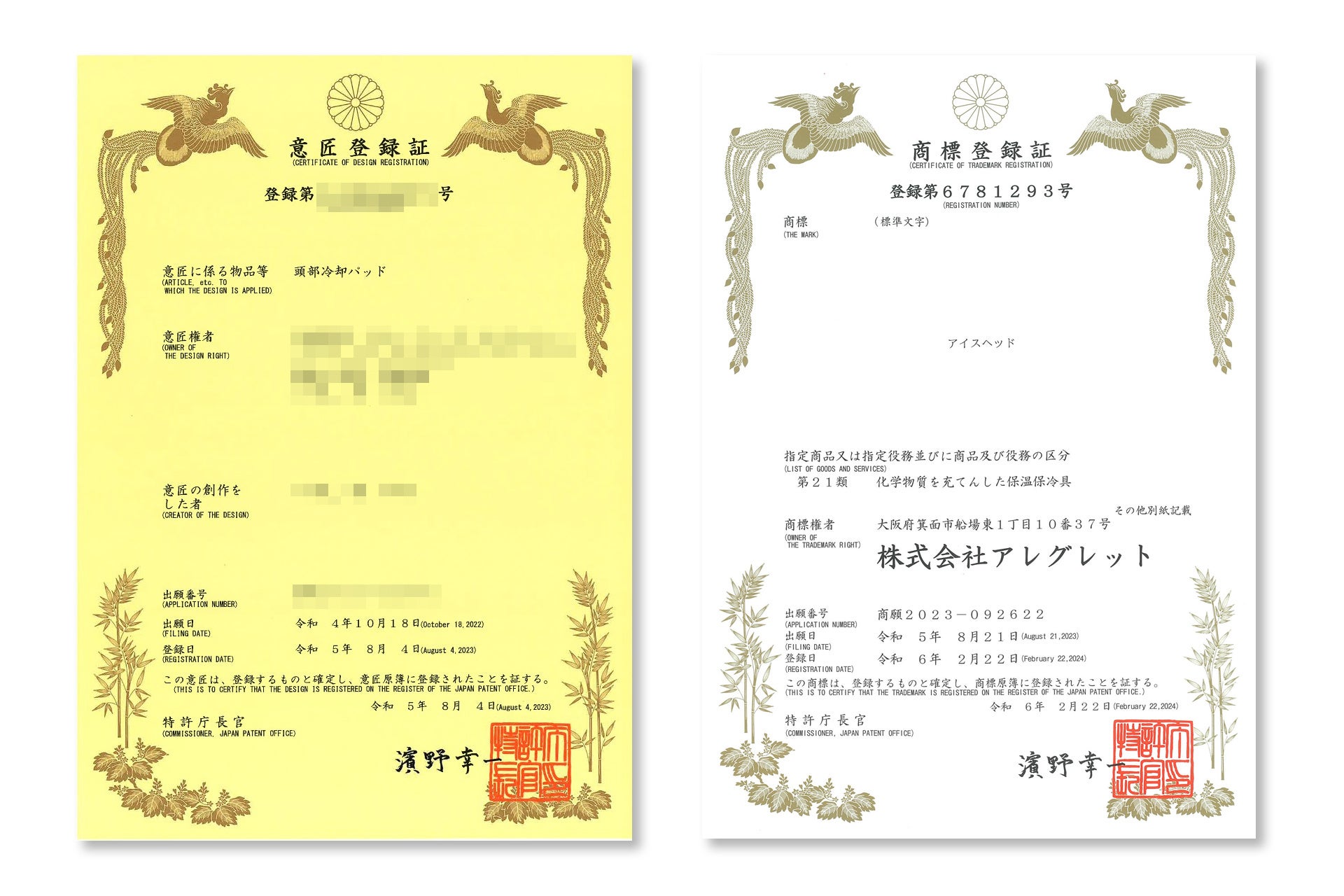 唯一無二の独自性が認められ、意匠登録されました。「めちゃクール アイスヘッド」は当社オリジナル商品であり当社運営ECサイト及び、正規卸先販売店でのみお買い求めいただけます。