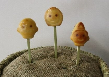 「武州岩槻町屋のれん会」による人形の「頭」の形をした新たな和菓子「雛ぐし」を販売します。