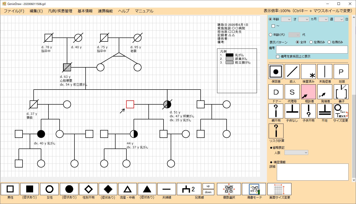 GenieDrawは、遺伝カウンセリングに特化した家系図作成支援ツールです。