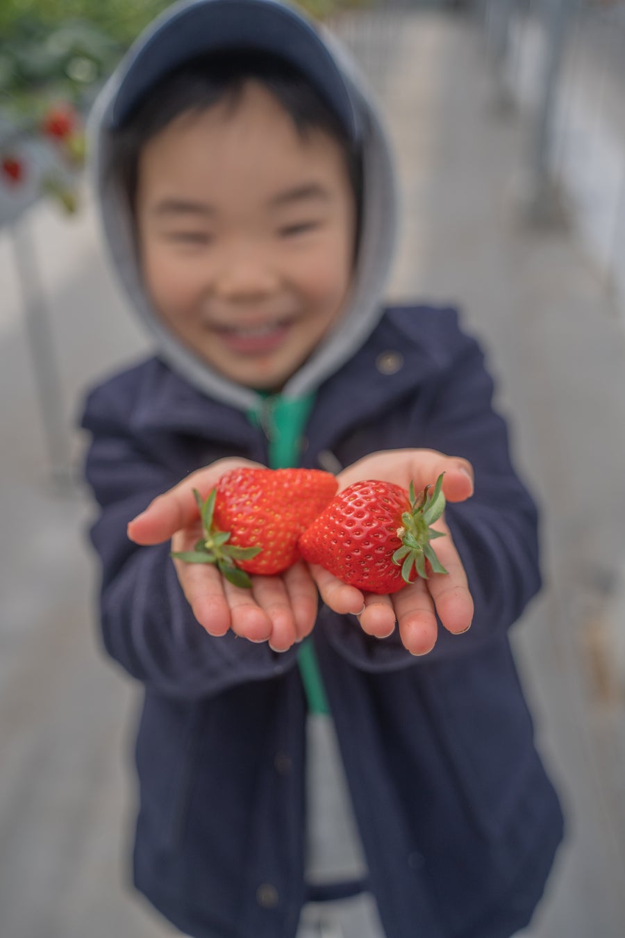同じ品種でも生産地や生産者によって違いは大きくあり、寒暖差が激しく農産物を育てるのに最適な三田の気候と、長年かけて肥料や栽培方法の改良(肥料に乳酸菌を加える・Panasonicの特殊なLED照明を導入する等)を重ねた結果、かさやの章姫、紅ほっぺの糖度は2月でも、なんと16 度を越えました。