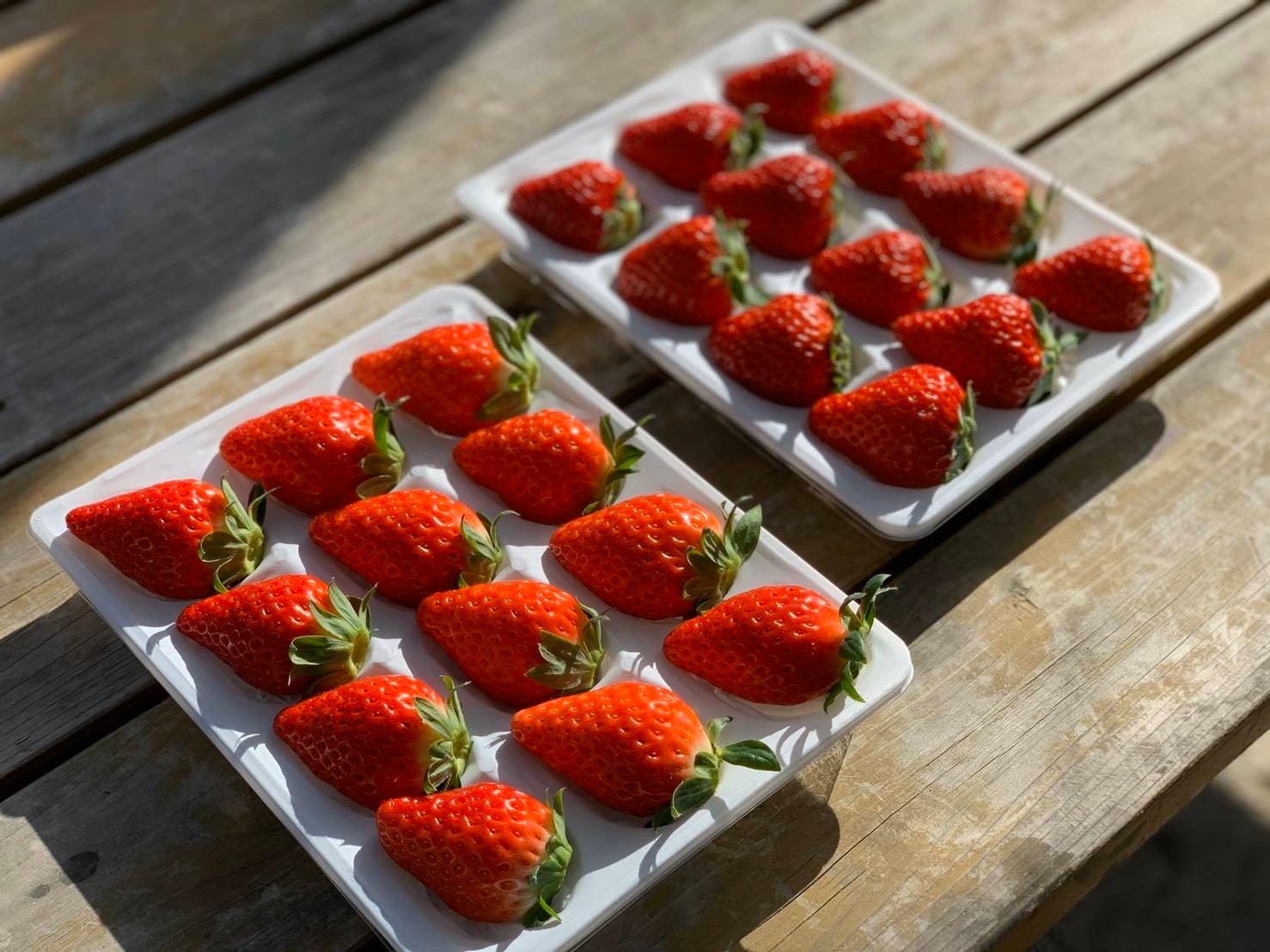 全国に300種類以上あるいちごの品種の中でも、かさやでは甘みが強く酸味が少ない章姫と甘みと酸味のバランスに優れた紅ほっぺの2種類に絞って生産をしております。