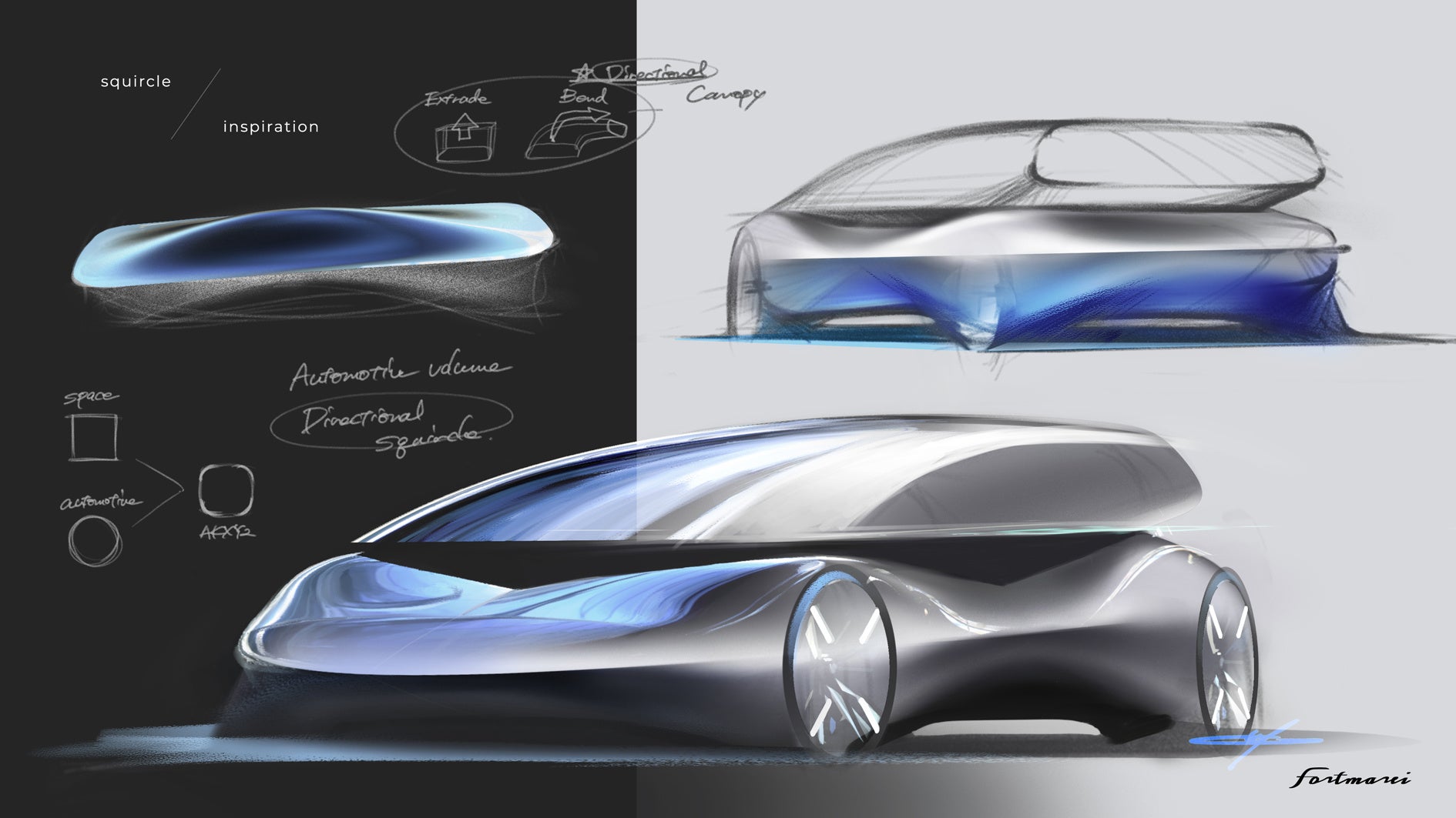 コンセプトカー「AKXY」シリーズは旭化成が車載コンセプトの象徴として展開するプロジェクトで、2017年に「AKXY」、2019年に「AKXY POD」を制作し、発表しました。過去に発表した2台のコンセプトカーのデザインとクリエイティブディレクションも石丸竜平が担当しました。