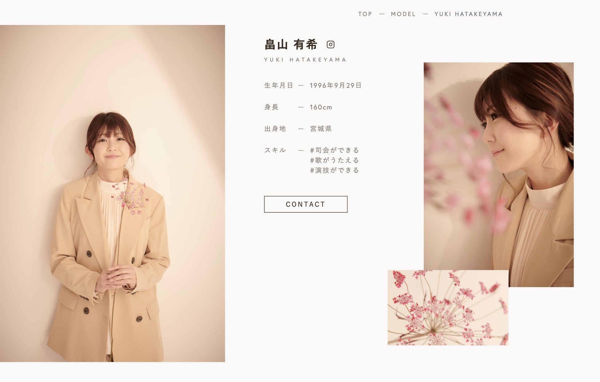 モデル一人ひとりを個性のある「花」と見立て、それぞれが一輪の花を持って撮影しています。モデル事務所のホームページはコンポジットが中心になりがちですが、モデルの個性をより感じてもらえるようにリニューアルしました。