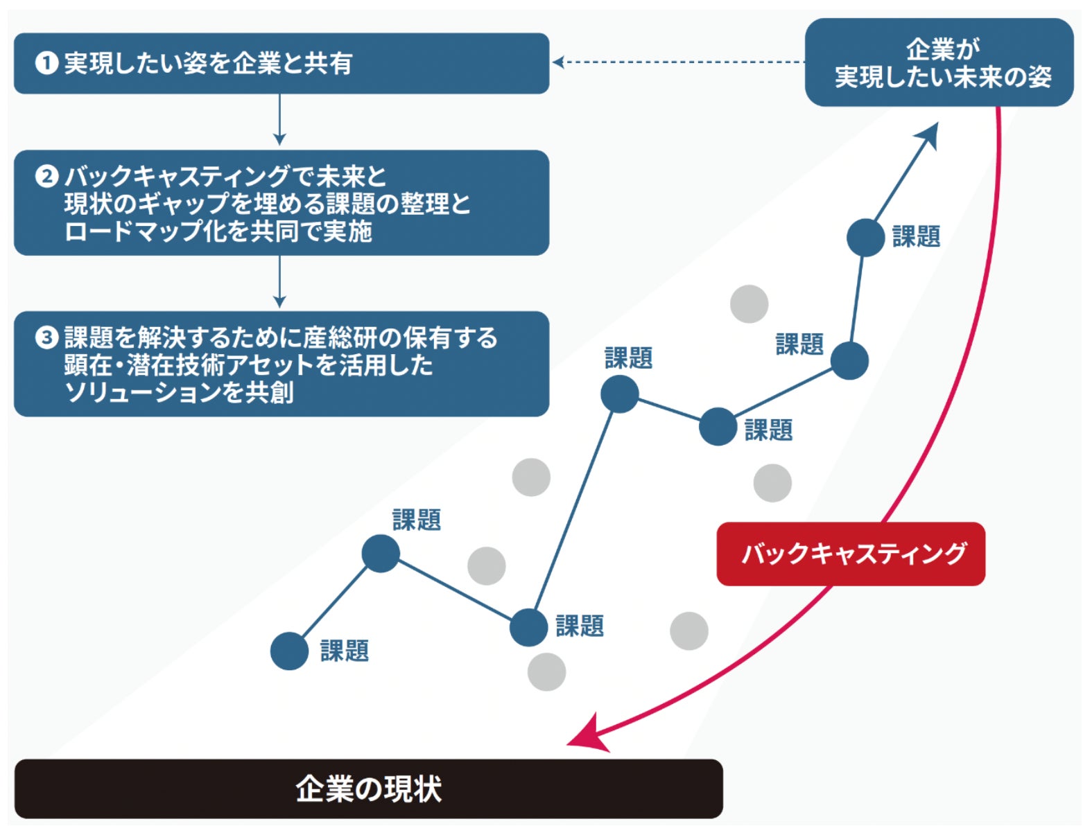 株式会社AIST Solutionsと当社はシナリオ・プランニングと産総研の技術アセットを活⽤し、社会実装を通じて新たな事業価値の創出を⽬的に活動開始します。