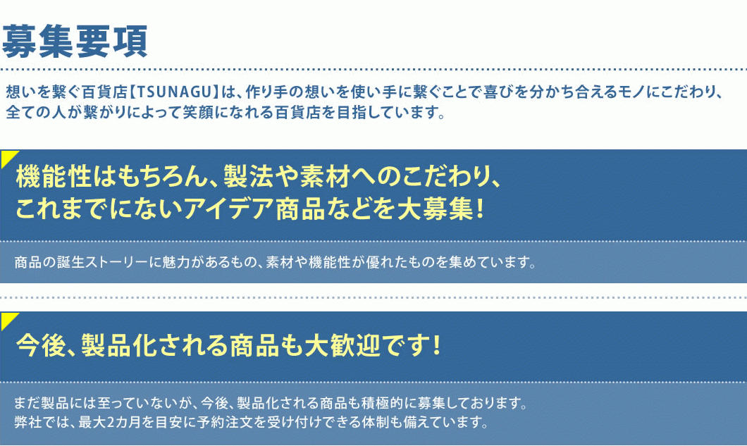 【商品募集】貴社の商品を、「想いを繋ぐ百貨店TSUNAGU」で販売しませんか?
