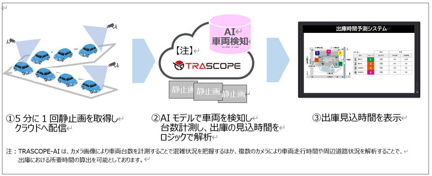 ▼「AI画像解析による駐車場出庫時間表示サービス」