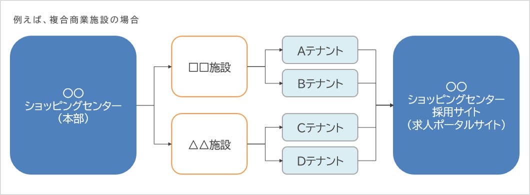 複数の施設を持っている場合以外にも、たくさんの事業所をもつ企業や、採用業務を部署ごとに管理している企業の方もご利用いただける機能になっています。