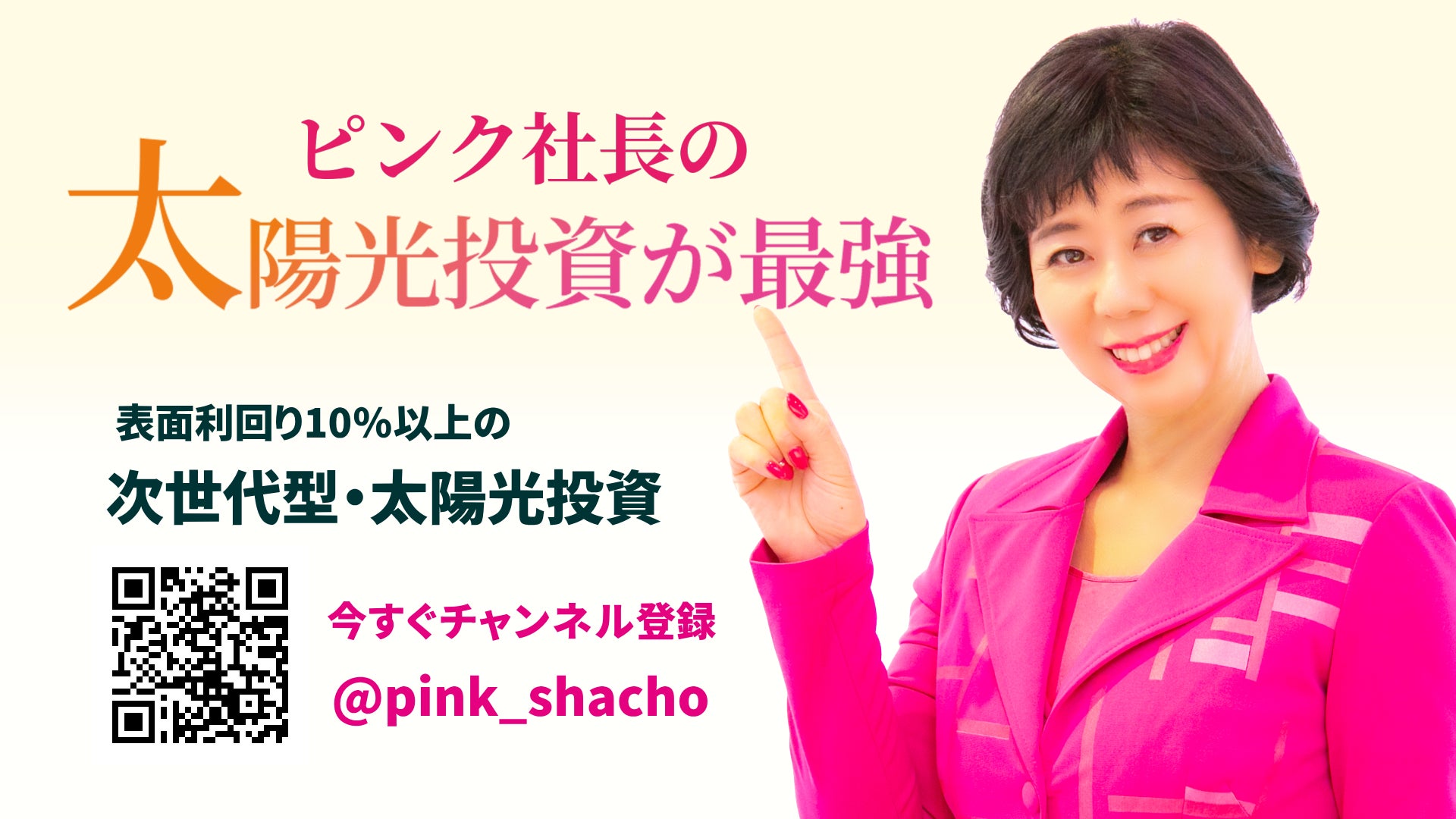 太陽光ビジネス14年×総額100億円規模の太陽光プロジェクトを推進した実績を持つ企業のYouTubeチャンネル『ピンク社長の太陽光投資が最強』 がスタート!