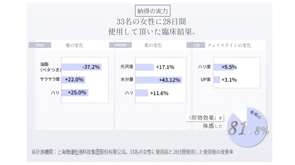 髪の状態・肌の水分量・フェイスラインのハリ度が向上できたという臨床結果もあるほど