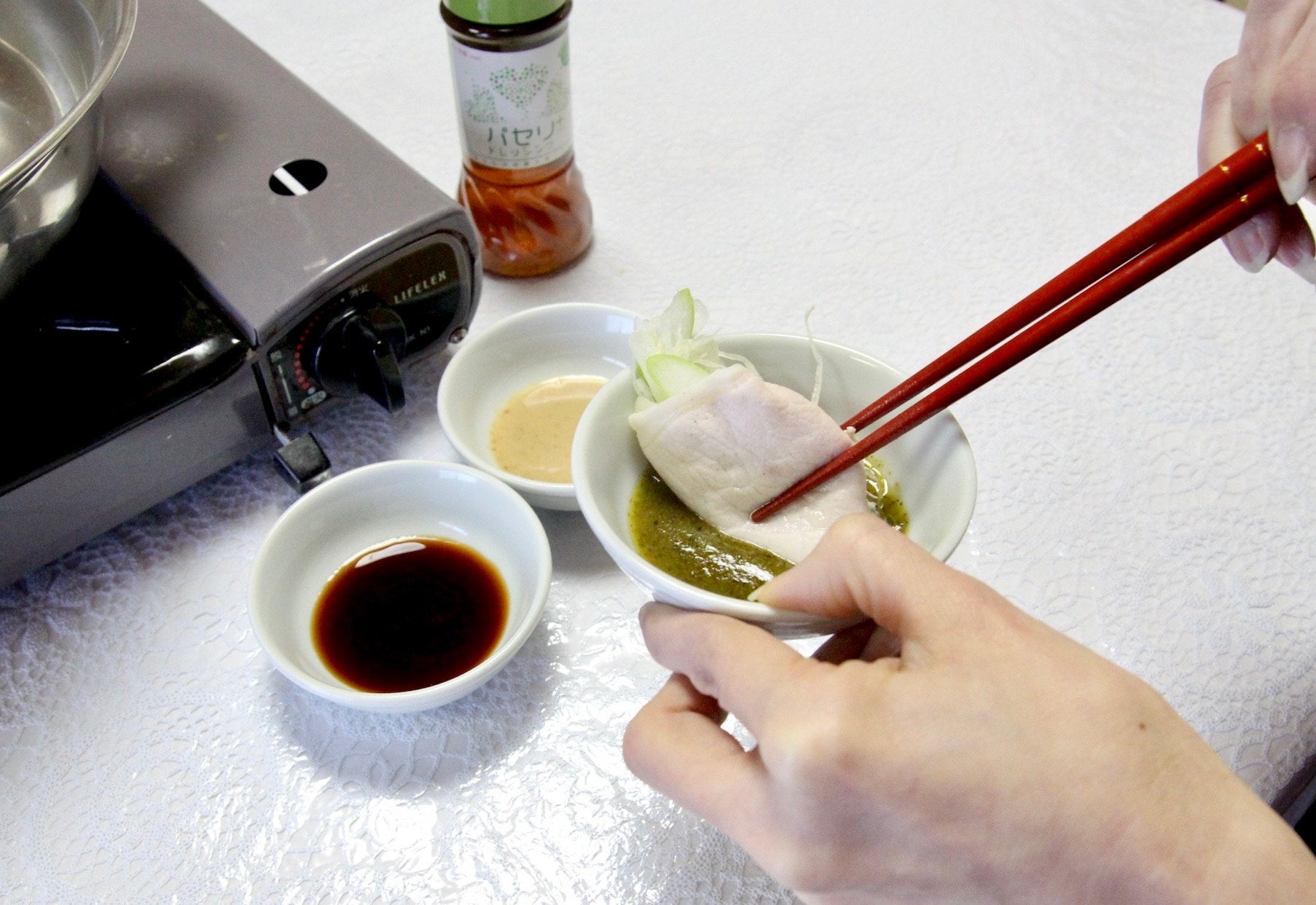 今の季節にピッタリな食べ方、しゃぶしゃぶのタレと相性抜群。
