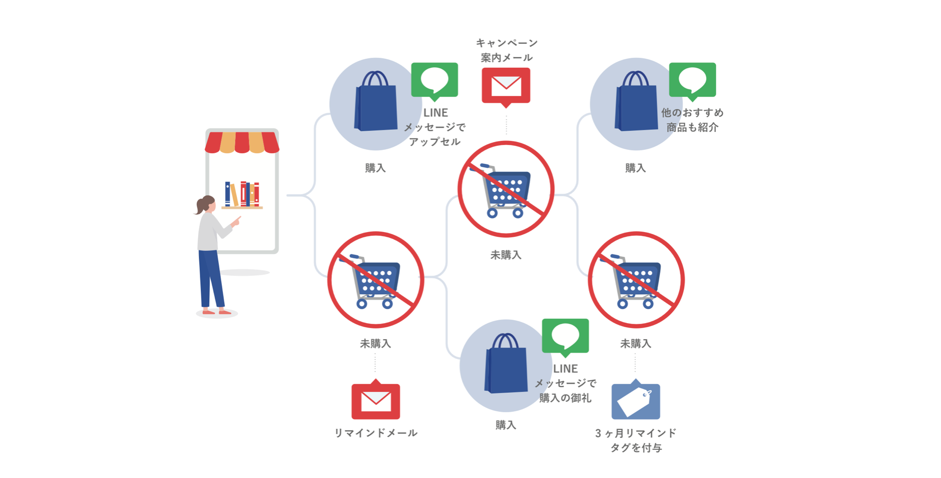 また、「Boken」は、顧客の属性を管理しやすいタグ機能や配信シナリオを簡単に作成できる「マーケティング・キャンパス画面」。効果的な配信シナリオのテンプレートやカスタマイズ機能も備えており、ユーザーが手間をかけずに配信を自動化することも可能です。