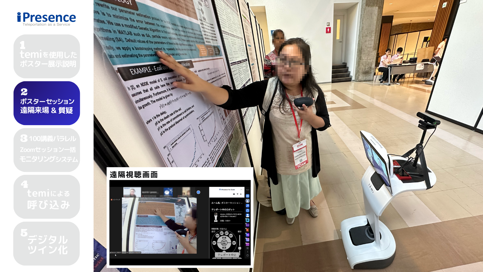 2: temiV3活用でのポスターセッションへのオンライン参加者の遠隔来場、発表者へ質疑