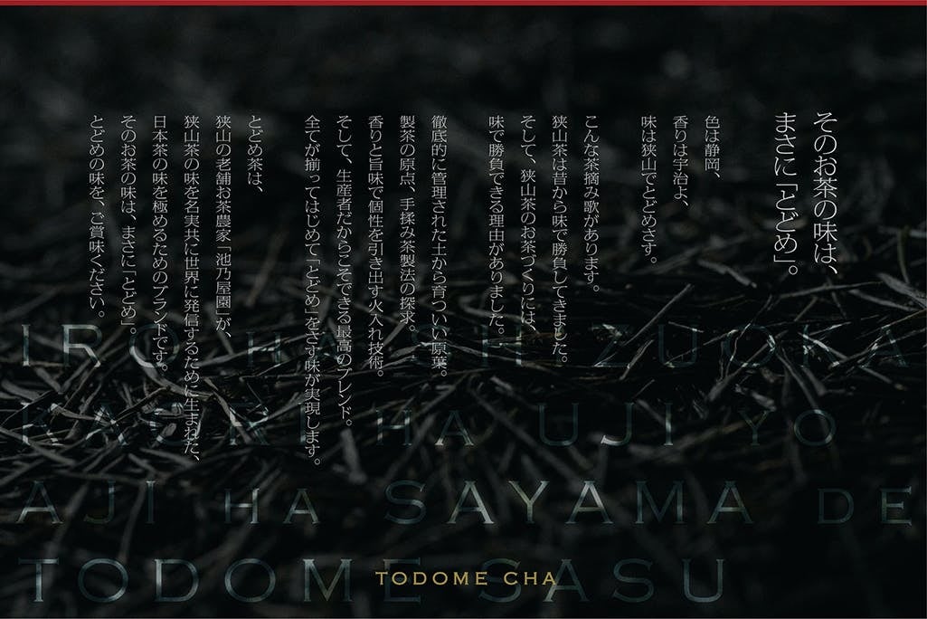 狭山茶の製造・販売をする有限会社池乃屋園(所在地:埼玉県入間市、代表取締役社長:池谷昭二)は、「色は静岡、香りは宇治よ、味は狭山で“とどめ”さす」と言われる味自慢の狭山茶を全国に広めていくため「とどめ茶~TODOME CHA~」と称した自社ブランド商品を作り、現在CAMPFIREにてクラウドファンディングに挑戦をしています。