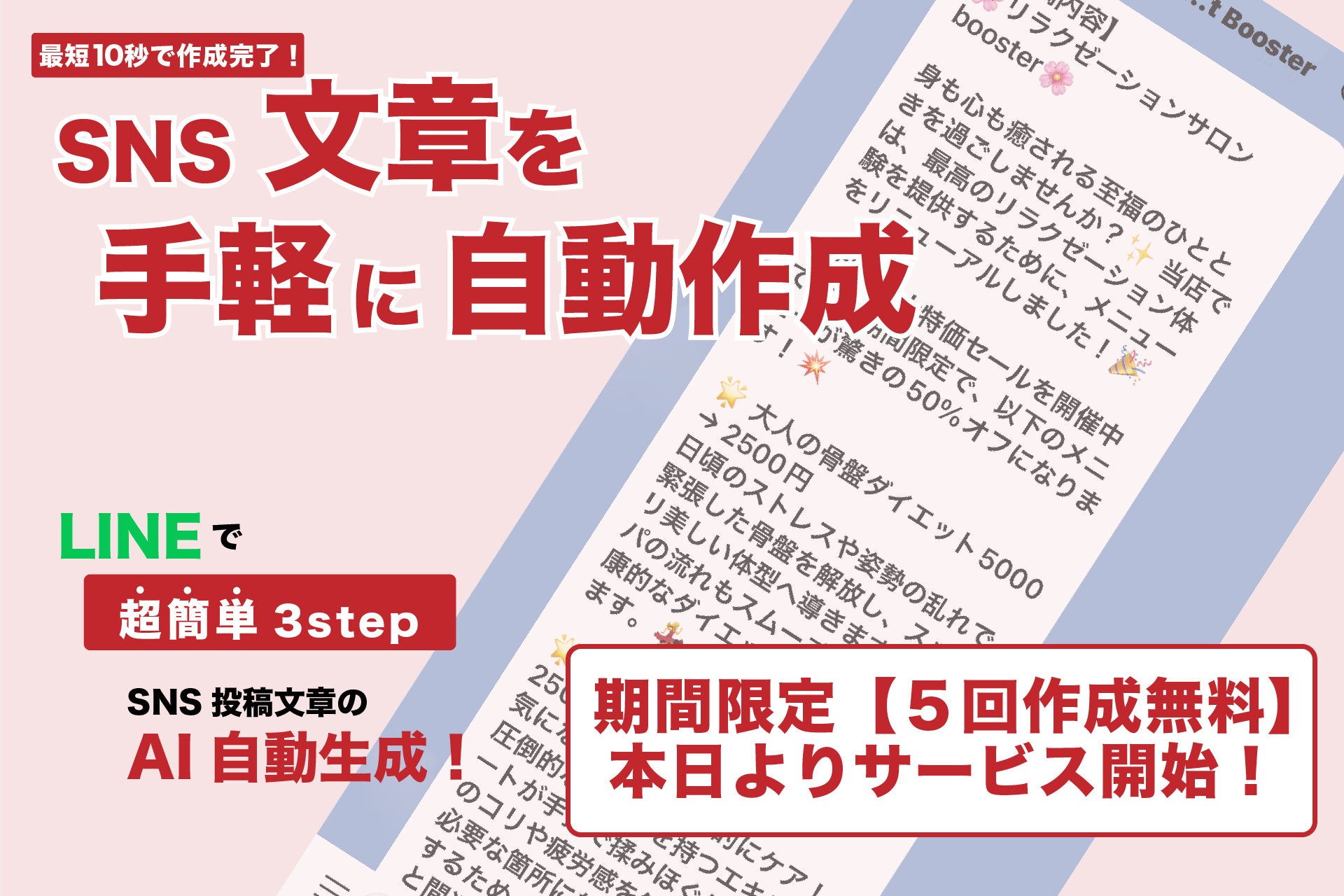 手軽に効果的なSNS投稿が実現!"Chat GPT"と"LINE"の融合ツール、『Message Post booster』期間限定【5回作成無料】のサービスを開始!