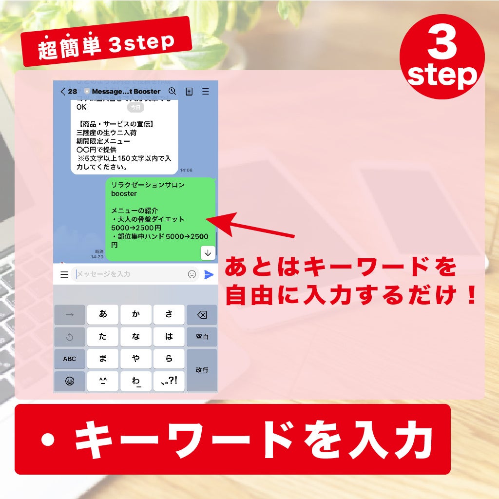 ・LINEを使い、いつもの要領でメッセージを入力するだけでOK!