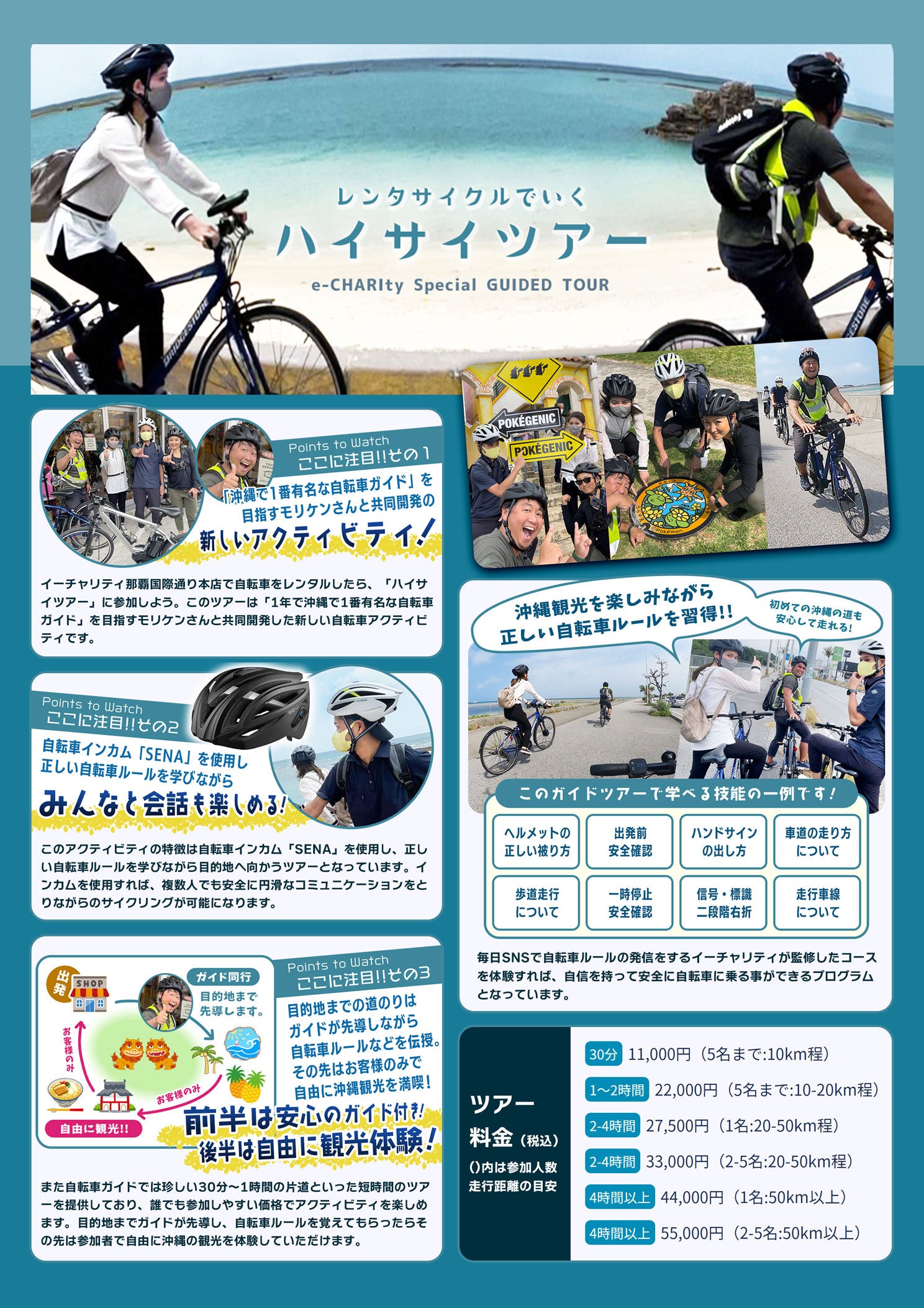 特徴は自転車インカム「SENA」を使用し、正しい自転車ルールを学びながら目的地へ向かうツアーとなっています。