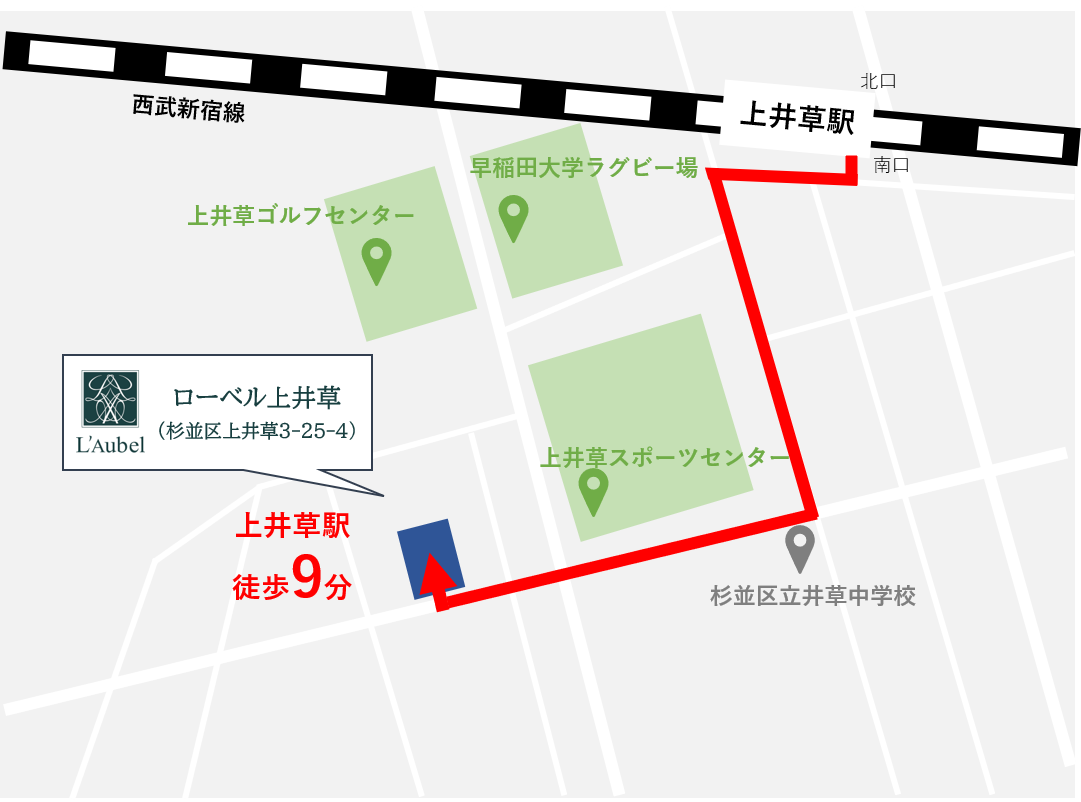 当施設は、「上井草駅」(西武新宿線)から徒歩9分に所在しております。駅からのアクセスも良く、住環境および生活利便に優れた立地となります。