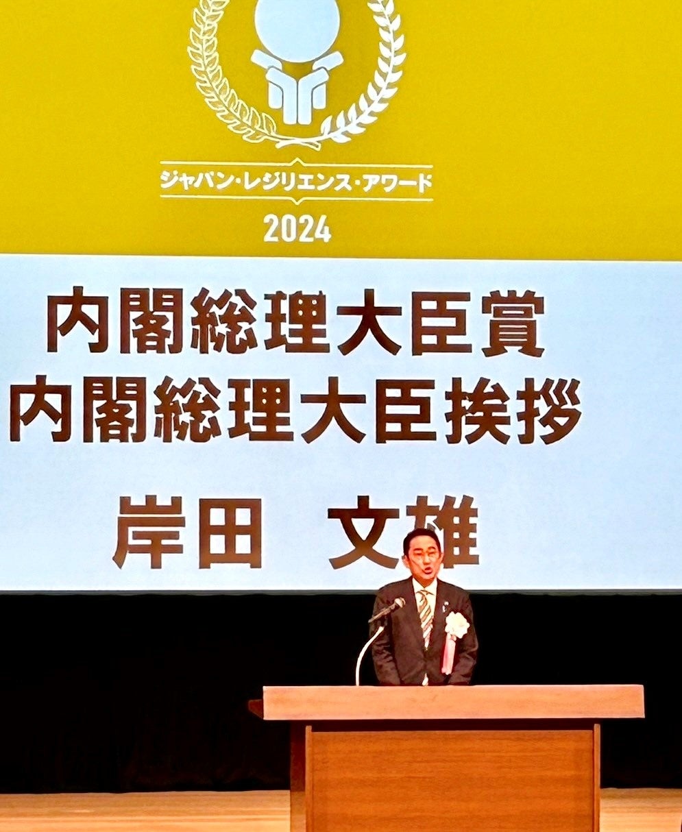 それに伴い、2024年4⽉23⽇にイイノホール&カンファレンスセンターにて、国土強靱化推進本部本部長である内閣総理大臣岸田総理もプレゼンターとして開催された授賞式に出席しました。