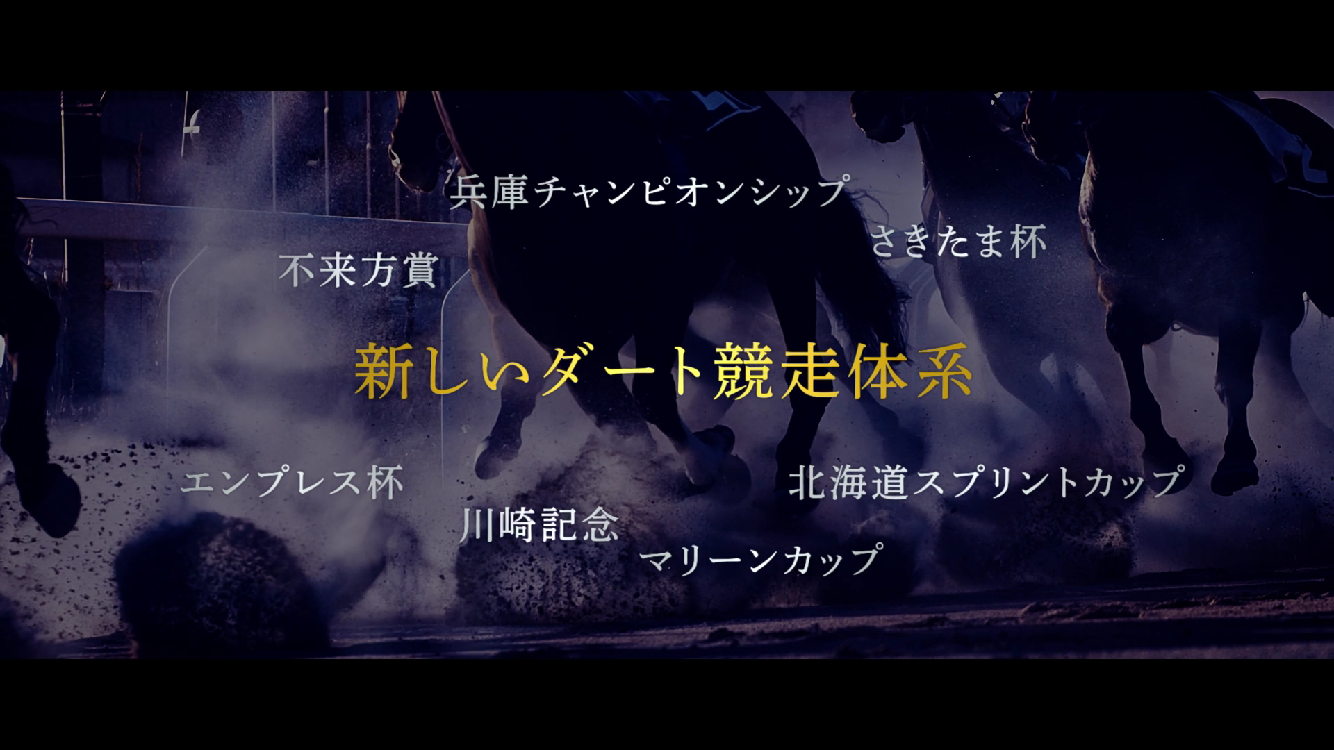 本CMは、新しいダート競走体系の整備によって生まれた「ダート競走馬の可能性」への想いを伝えるため制作。新体系で創設された「3歳ダート三冠競走(以下、ダート三冠)」をはじめ、ダート競馬の熱戦を盛り上げます。